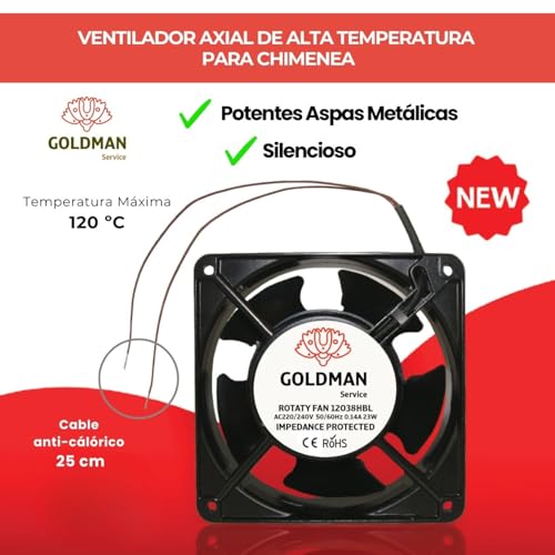 GOLDMAN SERVICE | Ventilator Axialventilator für Kaminkassetten mit hoher Temperatur, aus Metall, universell, 120 x 120 x 38 mm