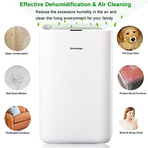 Greenmigo Luftentfeuchter 13L/ 24h Elektrischer Entfeuchter mit Raumgröße max. 50m², Leise Luftreiniger für Schrank, Wohnung, Keller- Gegen Feuchtigkeit, Schimmel