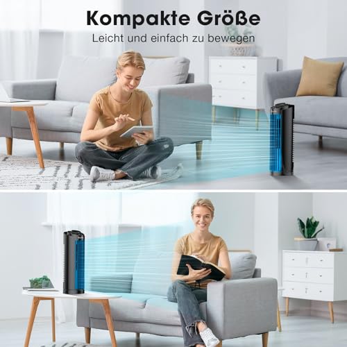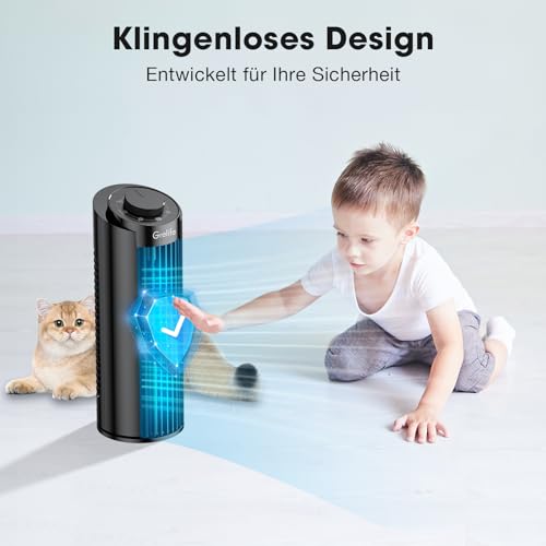 Grelife Leiser Turmventilator, 7, 9m/ s Geschwindigkeit, 70° Oszillierende Ventilatoren, Schnelle Kühlung Tischventilator für Büro, Zuhause, Schlafzimmer, Schwarz
