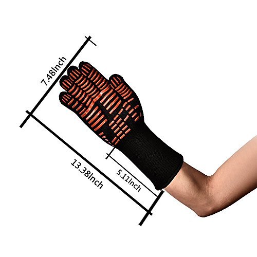 Grillhandschuhe hitzebeständig BBQ Ofenhandschuhe premium Qualität Kochhandschuh- „932°F Extreme Hitze hitzebeständige Handschuhe- 1 Paar (Länge)- 14“ extremes langen Bündchen, um den Handgelenk gut zu schützen.TTLIFE (Länge)