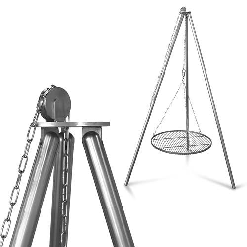 Grillrost.com Das Original Edelstahl Dreibeingrill | Schwenkgrill- klappbar mit Kettenführung- Sehr robuste deutsche Handwerksarbeit