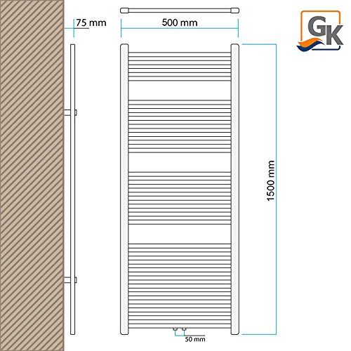 Gulfstream Komfort Badheizkörper 1500 x 500 mm in Schwarz gerade Hochwertiger Handtuchheizkörper Handtuchwärmer