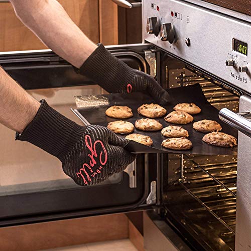 Hans Grill Barbecue Gloves/ Oven Mitts, Heat Resistant, Anti- Slip, Perfect for Cooking, Barbecue and Fireplace Accessories, Certified Cut- Resistant Gloves with Forearm Protector