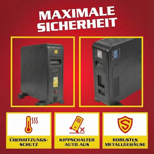 Die HECHT Elektroheizung bietet eine effiziente und zuverlässige Lösung für schnelle Wohlfühlwärme in Haushalt, Büro oder Werkstatt. Mit drei wattstarken Stufen lässt sich der Energieverbrauch flexibel steuern: 1000 W, 1300 W oder 2300 W. Die Bedienung erfolgt über ein übersichtliches LCD-Display, das eine präzise Temperatureinstellung ermöglicht. Stellen Sie Ihre Wunschtemperatur im Bereich von 5 °C bis 37 °C ein und genießen Sie konstant angenehme Wärme. Für zusätzlichen Komfort liegt eine Fernbedienung bei, damit Sie die Temperatur bequem vom Sofa oder Bett aus anpassen können. Sicherheit steht bei diesem Heizgerät an erster Stelle: ein integrierter Überhitzungsschutz sorgt dafür, dass Sie sich jederzeit auf zuverlässige Funktionsweise verlassen können. Das Thermostat reguliert die Temperatur und sorgt dafür, dass Ihr Raum konstant auf dem gewünschten Niveau bleibt. Geeignet als tragbarer, mobiler Heizkörper bietet dieses Gerät vielseitige Einsatzmöglichkeiten und ist damit eine praktische Ergänzung für jeden Raum.