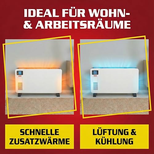 Stromsparend heizen mit drei Leistungsstufen (1000/1300/2300 W) und komfortabler Fernbedienung. Große LCD-Anzeige, Thermostat und Überhitzungsschutz für sichere, gleichbleibende Wärme.