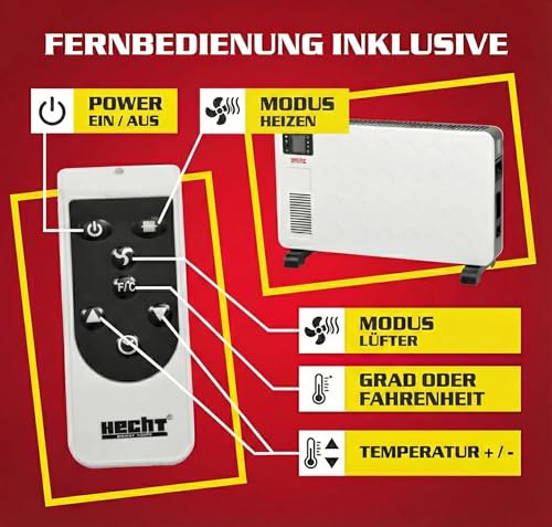 Hecht Elektroheizung (Brandneue Version)- Heizgerät für eine schnelle und wohlfühlende Wärme- Stromsparend- Mit 3 Leistungsstufen, Fernbedienung und Thermostat