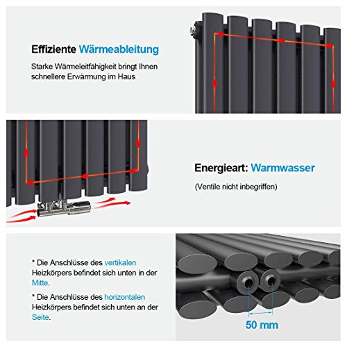 Heilmetz Paneelheizkörper Mittelanschluss Design Röhren Heizkörper Oval