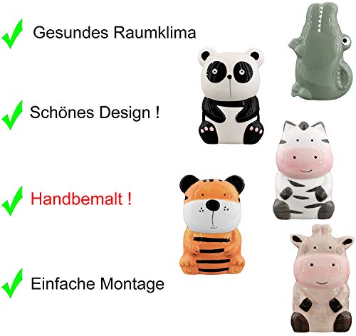 Hochwertige Luftbefeuchter 5- teiliges Set handbemalt- Tiermotive- für Heizung aus Keramik- glänzend glasiert- Wasserverdunster Verdampfer Verdunster Klima (Mix)