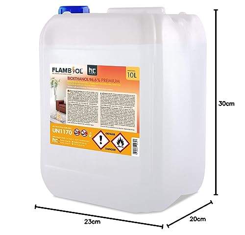 Höfer Chemie Bioethanol 96, 6% Premium 6 x 10 L- Ethanol für Tischkamin, Kamin & Gartendeko für Draußen- Rauch- und Rußfrei- Aus Mais & Zuckerrüben