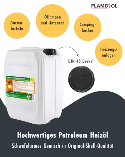 Höfer Chemie FLAMBIOL Gereinigtes Petroleum 3 x 20L Heizöl- Entaromatisierte Qualität- Für Campingheizung, Petroleumlampe & Grillanzünder- Rußfreie Verbrennung