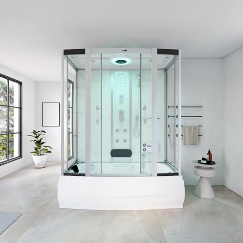 Weißer Home Deluxe Diamond Duschtempel mit integriertem Whirlpool und Dampfsauna bietet Wellnesskomfort auf kompakter Fläche. Effiziente Nutzung, modernes Erscheinungsbild und einfache Pflege.