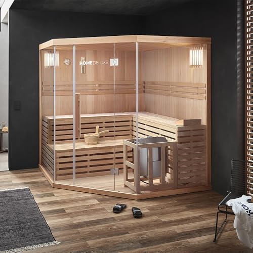 Home Deluxe- Traditionelle Sauna- Skyline XL Big- 200 x 200 x 210 cm- für 2- 6 Personen, Hemlocktanne, inkl. Saunaofen, Saunazubehör I Dampfsauna Aufgusssauna Finnische Sauna Bio Sauna