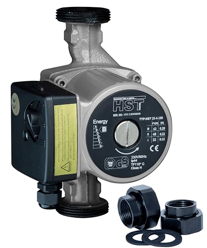 Die HST 25-40/180 mm Umwälzpumpe bietet zuverlässige Förderleistung für Heizsysteme mit einer maximalen Förderhöhe von 4 m. Das Gehäuse aus Gusseisen sorgt für Robustheit und lange Lebensdauer, während die 230 V Stromversorgung und der IP44-Schutz eine sichere Anwendung auch in feuchteren Bereichen ermöglichen. Die Pumpe verfügt über eine manuelle 3-Stufen-Drehzahlschaltung, die je nach Bedarf 32 W, 48 W oder 62 W Leistungsaufnahme ermöglicht. Mit einem Anschlussgewinde von 1 1/2″ und einer Einbaulänge von 180 mm passt sie in gängige Heizkreise. Der Betriebsbereich reicht von 2 bis 110 °C, sodass sie in diversen Heiz- und Wärmepumpenanwendungen eingesetzt werden kann. Das keramische Lager sorgt für eine langlebige Lagerung und Betriebsdauer, während der maximale Druck von 10 bar zusätzliche Betriebssicherheit bietet. Ideal geeignet für den Einsatz in Wärmepumpensystemen, wo eine effektive Umlaufpumpe mit zuverlässiger Leistungsabgabe benötigt wird.