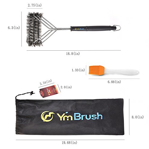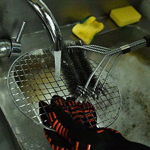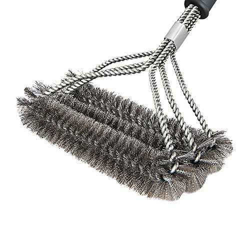 HUKOER BBQ Grill Reinigungsbürsten Waschreinigungsbürste Edelstahl/ 18inch 3- Sided Lange mit Aufhängeöse (A)