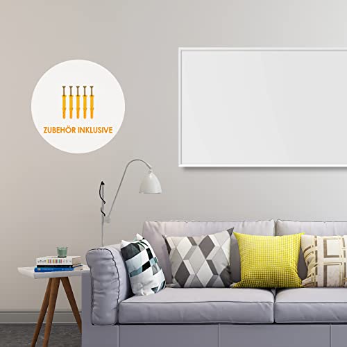 Die Infrarotheizung mit Thermostatsteuerung bietet eine zuverlässige, energiesparende Wärmelösung für Wandmontage. Über die Smart Life App lässt sich das Heizpanel bequem von überall aus steuern und sorgt für eine komfortable Raumtemperatur. Ein integrierter Empfänger arbeitet zusammen mit einem kabellosen Temperaturfühler, sodass kein externes Steckdosenthermostat erforderlich ist und die Regelung präzise erfolgt. Die Infrarotheizung setzt auf Strahlungswärme ähnlich dem Sonnenlicht, wodurch kein CO2-Ausstoß entsteht und der Betrieb vergleichsweise kostenbewusst bleibt. Die Oberflächentemperatur ist sicher begrenzt (75 °C bis 95 °C) und alle relevanten Heizplatten erfüllen Sicherheitsstandards wie CE, TÜV und GS. Dank des schlanken Designs nimmt der Heizkörper nur wenig Platz ein und der Montagezubehör ist im Lieferumfang enthalten, sodass die Wandheizung unkompliziert installiert werden kann. Geeignet für Räume, in denen eine diskrete, saubere und effiziente Wärmequelle gewünscht wird – ideal als energiesparende Alternative zu herkömmlichen Heizsystemen.