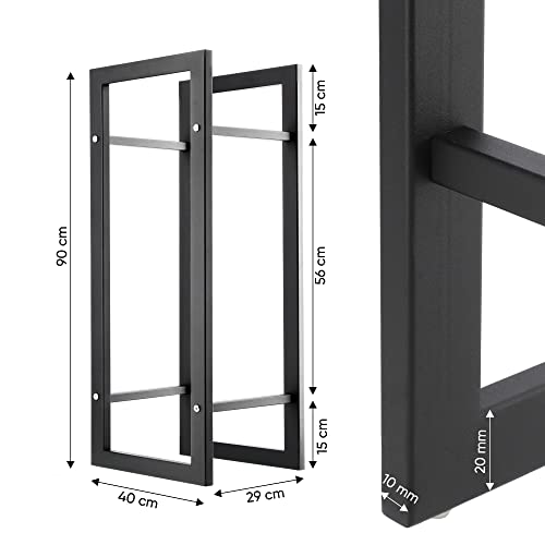 KADAX Kaminholzgestell, Kaminholzregal aus robusten Stahl, schwarzer Kaminholzhalter, pulverbeschichtetes Brennholzregal in verschiedenen Mustern (29 x 40 x 90 cm)