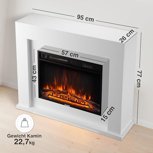 KAMINIO Elektrokamin Matti- Elektrischer Standkamin mit Heizung, 3D- Flammeneffekt, LED- Ambientelicht, Fernbedienung- 38 Zoll (Weiß)