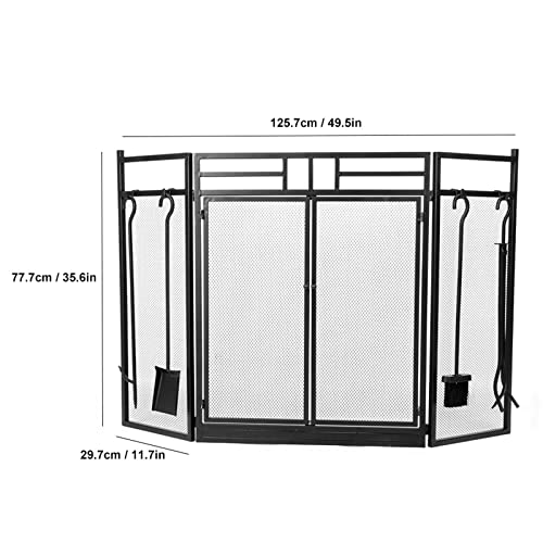 JUNNIU 3- teilige, zusammenklappbare Kaminblende mit Metallgitterabdeckung, Solider, sicherer Schutzzaun für Babys und Haustiere für den Innen- und Außenbereich, Schwarz- Höhe 85 cm Decoration
