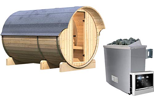 Karibu Fass- Sauna 3 42 mm inkl. 9- kW- Ofen- Saunahaus