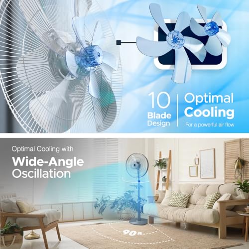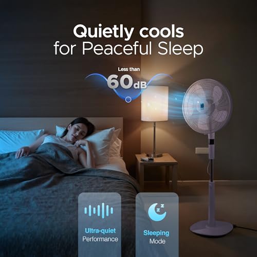 Leichte, leistungsstarke Raumkühlung mit verstellbarer Höhe, 26 Geschwindigkeiten, 3 Modi und 90° Oszillation. Fernbedienung, LED-Display, 24-Stunden-Timer – ideal für Zuhause und Büro.