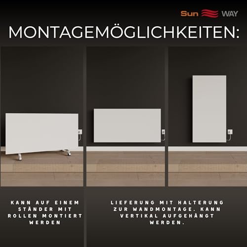 Keramik infrarotheizung wandmontage mit thermostat Sun WAY TCM- RA 1000 P | Heizung bis zu 20 m² | 1000 W