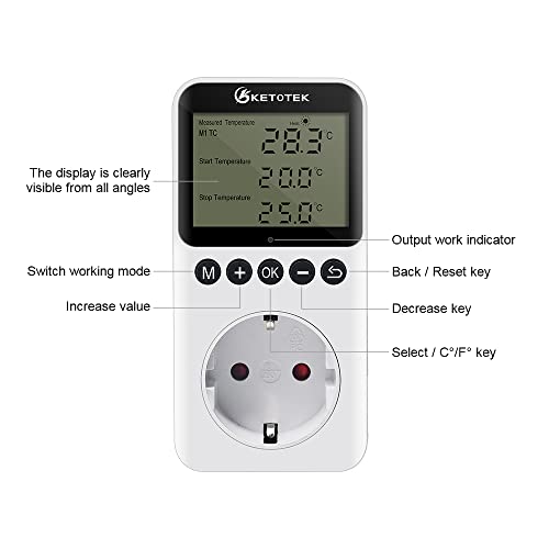 KETOTEK Tag Nacht Thermostat Steckdose Digitaler Temperaturregler mit 3M Fühler Timer Heizung Kühlung Steckerthermostat mit Zeitschaltuhr für Gewächshaus Terrarium Reptilie