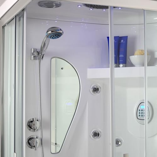 Kiamami Valentina- Cabina Doccia Multifunzione con Bagno Turco | 16 Getti Idromassaggio | Ante in Vetro Temperato | Illuminazione Interna e Radio, 70x110CM SX