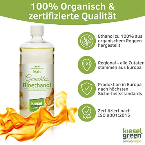 KieselGreen Bioethanol Geruchlos 24 x 1 Liter Sets für Ethanol- Kamin- Premium Bio Ethanol Kamin Indoor oder Bioethanol Tischfeuer… (Geruchlos)