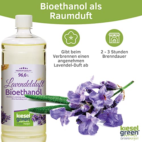 KieselGreen Bioethanol mit Duft 24 x 1 Liter Sets für Ethanol- Kamin- Premium Bio Ethanol Kamin Indoor oder Bioethanol Tischfeuer… (Lavendelduft)