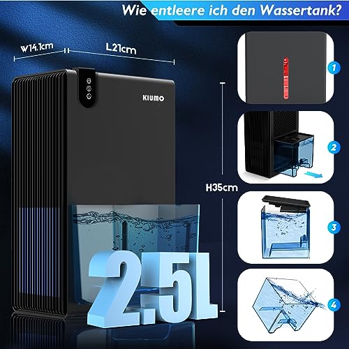 Kiumo Luftentfeuchter, (30m²) 2.5L für RV, Schlafzimmer Badezimmer und Andere Kleine Räume mit Utomatischer Abschaltfunktion, Zwei Betriebsmodi und 7 Farben LED- Licht(Schwarz)