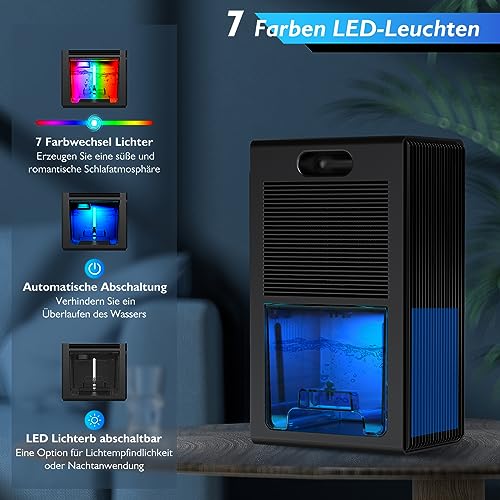 Kiumo Luftentfeuchter mit Halbleiter-Kondensationstechnologie, 2 Modi (Hochgeschwindigkeit/Schlaf), 1000 ml/Tag, transparenter Tank, 7-Farben-Beleuchtung, kompakt für kleine Räume.
