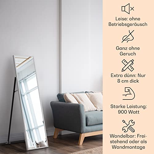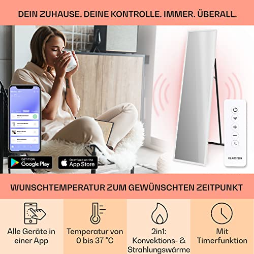 Klarstein Infrarotheizung, Infrarot Spiegelheizung Standgerät, Infrarotheizung mit Thermostat, Heizung mit Erkennung Offener Fenster & App- Control, Heater CO2- Frei, IP24 Infrarot Heizgeräte, 900 W
