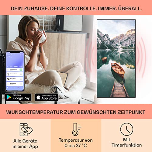 Klarstein Infrarotheizung mit Thermostat, 700W Elektroheizung, Smart Home Bild- Infrarotheizung zur Wandmontage, IR mit IoT/ WiFi App- Control, Feuchtraum Flach- Heizkörper, CO2- Freie Wand Heizung