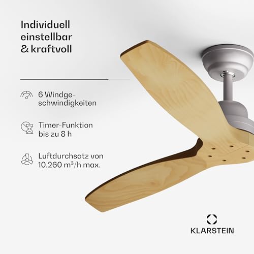Klarstein Santa Elena: 132 cm Deckenventilator mit Echtholzflügeln, 6 Geschwindigkeiten, leiser Betrieb, Sommer- und Wintermodus, Timer bis 8 Stunden, Fernbedienung, Smart App.