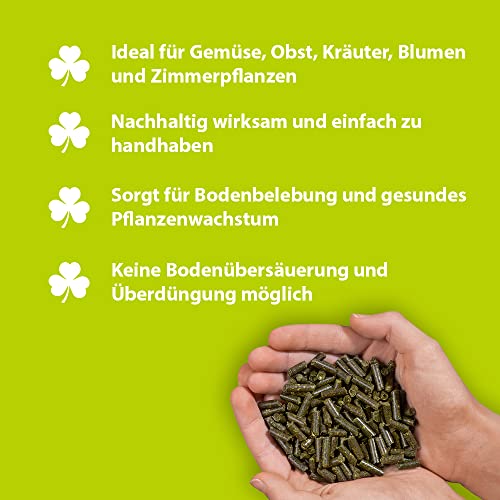 NATURLAND-zertifizierter Bio-Dünger aus 100% Bio-Klee und Luzerne. Vielseitig einsetzbar für Gemüse, Obst, Blumen, Kräuter und Zimmerpflanzen. Veganer Dünger mit NPK 3,5/0,8/3,4.