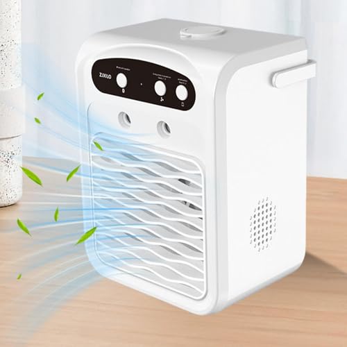 Kompaktes, tragbares Klimagerät mit 3 Verdunstungskühlstufen, 1-Liter-Wassertank, LED-Beleuchtung und integrierter Audio-Funktion. Ideal für Arbeitsplatz, Zuhause und unterwegs.