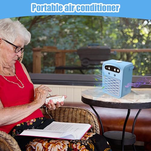 Kleines Klimagerät- 3 Etagen Verdunstungskühler mit 1 Liter Wassertank und Beleuchtung, tragbare Klimaanlage 1000 g | Mobile Luftbefeuchter mit Lautsprecher für Arbeitsplatz