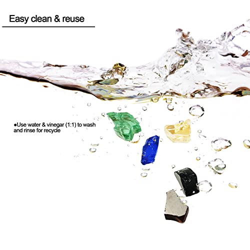 Kleuete 4, 5 kg zerkleinertes Feuerglas in den Farben Gold, Kupfer und Hellgrün bietet eine hochwertige, gehärtete Glasvariante für Innen- und Außenkamine, Feuerschalen und Gartenbereiche. Durch das Hinzufügen von Feuerglas in der Feuerstelle erhöht sich die Wärmestrahlung deutlich und schafft eine einladende Wärme an kühlen Abenden. Das glasierte Material glänzt wie Diamanten und erzeugt ein stimmungsvolles Licht, ohne schädliche Gase oder Staub zu emittieren. Das Feuerglas ist sowohl für Propangas- als auch für Erdgas-Feuerstellen geeignet und lässt sich vielseitig einsetzen – als Dekoration im Garten, im Hof, im Aquarium oder als Akzent in Blumentöpfen. Hergestellt aus recyceltem Glas, bereits tem periert und damit sicher in der Anwendung. Die Perlen sind glatt, handhabungsgerecht verpackt und einfach mit Essig und Wasser zu reinigen.