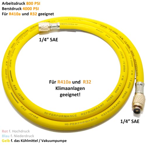 Klimaanlage Split R410a/ R32 Füllschlauch 1, 5m 1/ 4 SAE 1/ 4 gelb