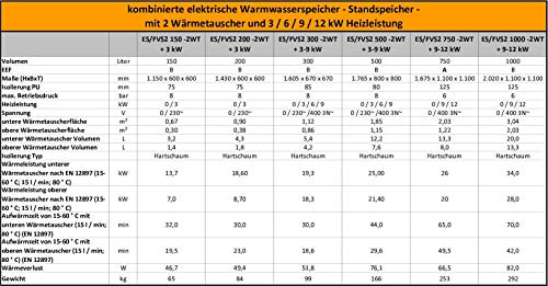 200 L Warmwasser-Speicher mit zwei Wärmetauschern, 3 kW Heizleistung, Sicherheitsventil mit Rückschlagklappe und Magnesiumschutzanode. Abmessungen: 1430 x 600 x 600 mm, 84 kg Gewicht. 230 V, 3000 W.