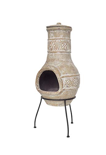 La Hacienda Star Flower Clay Chimenea- handgefertigt- traditionelle Terrassenheizung- Kamin- Holzbefeuerung