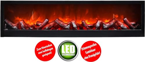 LED Wandkamin Tischkamin Elektrokamin mit realistischer Flammensimulation Kaminfeuer Feuersimulation schwarz inkl. Fernbedienung 60x20cm