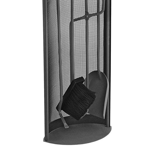Elegantes, schwarz beschichtetes Kaminbesteck mit Griffen aus Edelstahl. Bestehend aus Besen, Schaufel, Zange und Schürhacken; Maße 23 x 66 x 15 cm.