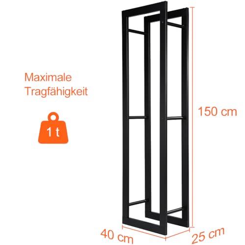 Loywe Kaminholzregal 40X25X150cm Kaminholzhalter Brennholzregal Feuerholzregal Kaminholzständer Brennholz Holzhalter aus Metall in Schwarz LW1084