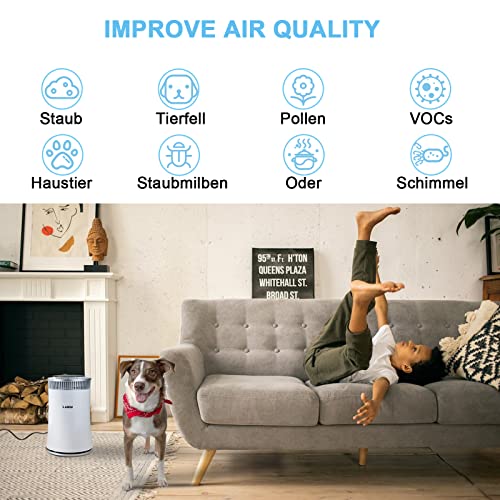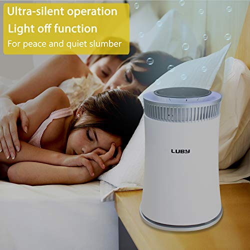 Luby Luftreiniger Air Purifier mit HEPA- Filter, 5 Geschwindigkeiten, 8H- Timer, Nachtlicht, Tragbarer Luftfilter für Staub, Raucher, Pollen, Hautschuppen, Heuschnupfen, Geruch, White