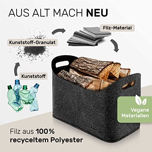 MAHEWA Holzkorb aus verstärktem Filz- mit kratzfestem Innenmaterial- Handgefertigter Kaminholz- Korb mit Großer Tragkraft- Faltbarer Filzkorb für Brennholz und für Vieles mehr Anthrazit
