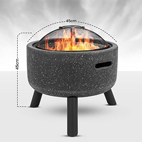 Runde Feuerschale mit Grill, Funkenschutz und stabilem Stahlgewebe. Durchmesser 45 cm, Höhe 45 cm, ca. 10 kg. Perfekt für Wärme, Geselligkeit und Grillmomente im Garten.