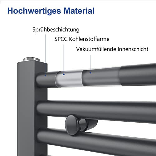 Meykoers Handtuchheizkörper 1200 x 500mm Badheizkörper Handtuchtrockner Mittelanschluss Handtuch Heizkörper Bad Handtuchhalter Heizung Radiator Anthrazit 513 Watt