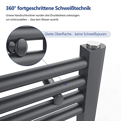 Meykoers handtuchheizkörper Mittelanschluss 1600x600mm Badheizkörper Handtuchhalter Badezimmer Handtuchwärmer Handtuchtrockner handtuch heizung Heizkörper Bad Anthrazit 761 Watt