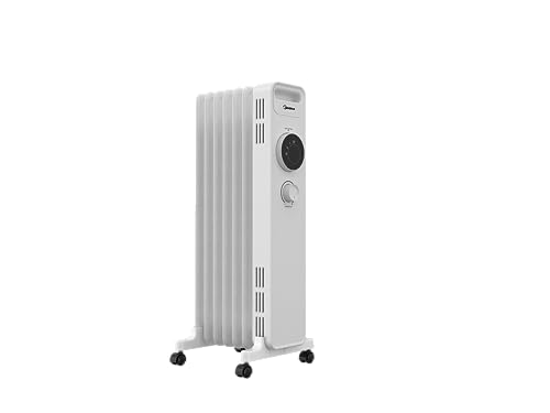 Midea NY1507- 22M Ölradiator 1500W Energiesparend Leise, Elektroheizung mit 7 Rippen, Thermostat, 3 Heizstufen, Kipp- und Überhitzungsschutz, ECO- Modus, schnell beheizbar und tragbar, weiß